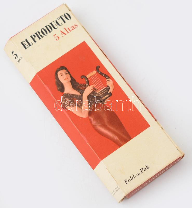 Leírás: El Producto 5 Atlas, régi szívaros doboz, 3 db szivarral.