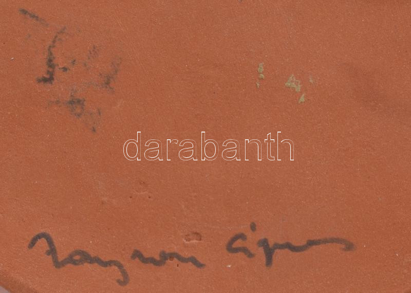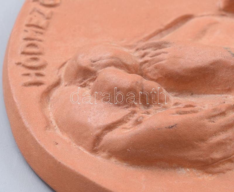 Leírás: 1985 Zajzon Ágnes: Szoptató anya. Kerámia plakett, kopással, d: 12 cm