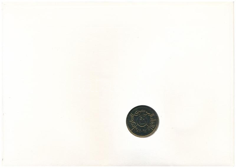 Yemen 1985. 50 Fils Cu-Ni in envelope with stamp and cancellation, with German description C:AU patina