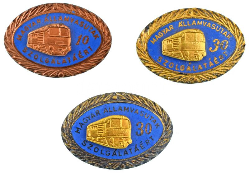 Leírás: ~1970-80. "Magyar Államvasutak Szolgálatáért" zománcozott törzsgárda jelvények 10 és 30 év után (3db, 2xklf) T:XF
