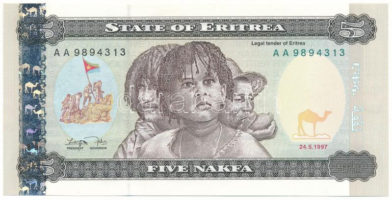 Krause P#2 https://www.darabanth.com/hu/489-Gyorsarveres/489.0/Numizmatika/Kulfoldi-bankjegyek~2000015/Eritrea-1997-5N-TUNC3Cbr-3E-Eritrea-1997-5-Nakfa-CUNC3Cbr-3E-Krause-P232~II3354967