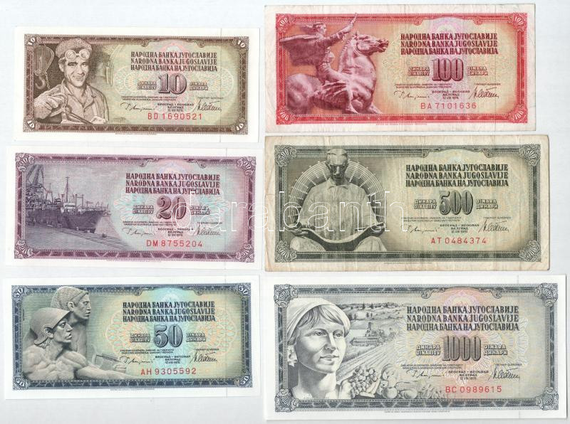 Yugoslavia 1978. 10 Dinara - 1000 Dinara (6xdiff) C:AU, in it 2pcs F