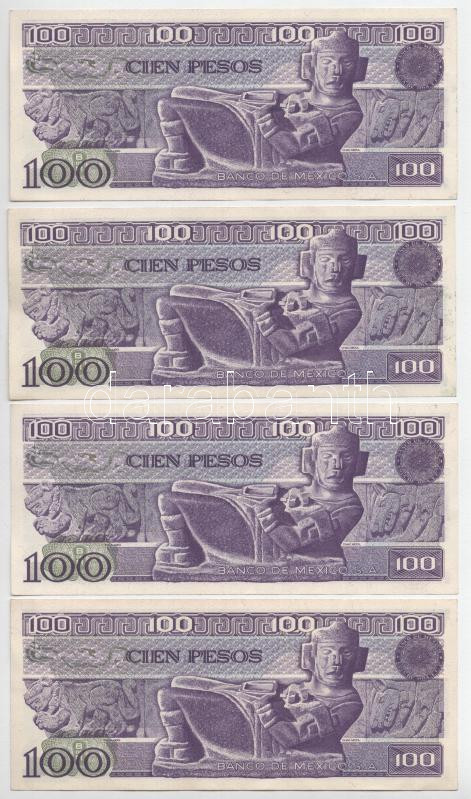 Mexico 19... https://www.darabanth.com/hu/489-Gyorsarveres/489.0/Numizmatika/Kulfoldi-bankjegyek~2000015/Mexiko-1981-100P-4x-kozeli-sorszamokkal-TAU-sarokhajlas-Mexico-1981-100-Pesos-4x-close-s~II3136351