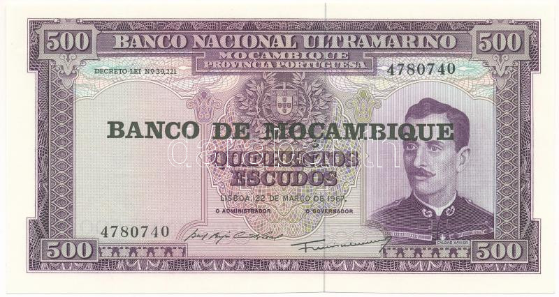 Mozambik 1976. (1967) 500E fekete "BANCO DE MOCAMBIQUE" felülbélyegzéssel T:AU
