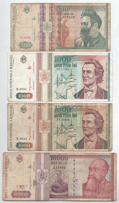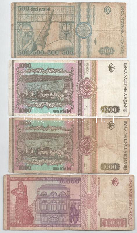 Románia 1992. 500L + 1993. 1000L (2x) + 1994. 10.000L T:F Romania 1992... https://www.darabanth.com/hu/489-Gyorsarveres/489.0/Numizmatika/Kulfoldi-bankjegyek~2000015/Romania-1992-500L-plus-1993-1000L-2x-plus-1994-10000L-TF-Romania-1992-500-Lei-plus-1993-1000-Lei-2~II3243005