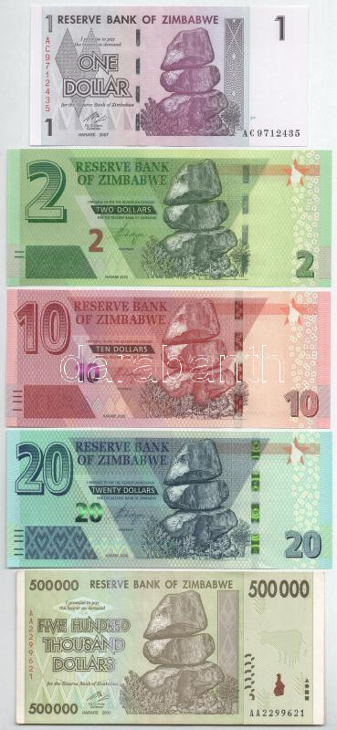 Zimbabwe 2007. 1$ + 2019. 2$ + 2020. 10$ + 20$ + 2008. 500.000$ T:AU k... https://www.darabanth.com/hu/489-Gyorsarveres/489.0/Numizmatika/Kulfoldi-bankjegyek~2000015/Zimbabwe-2007-1USD-plus-2019-2USD-plus-2020-10USD-plus-20USD-plus-2008-500000USD-TAU-kozte-egy-VF-Zimbabwe-2007-1-~II3245184
