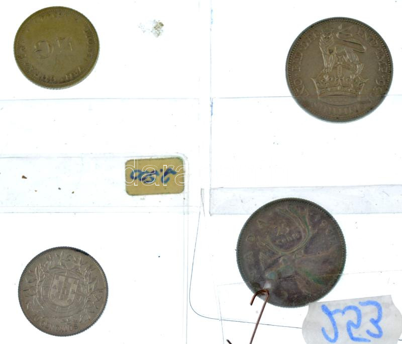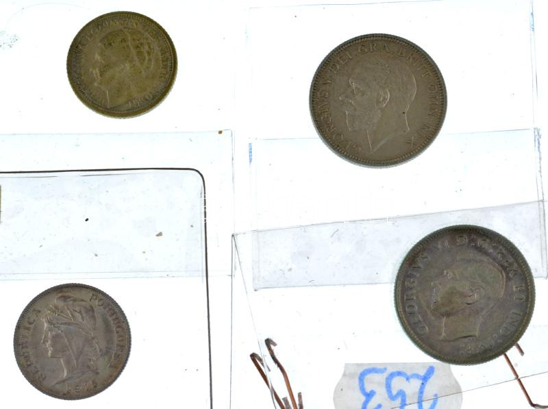 Leírás: 4db klf ezüstpénz, közte Portugália 1915. 10c Ag, Nagy-Britannia 1936. 1Sch Ag T:AU-VF