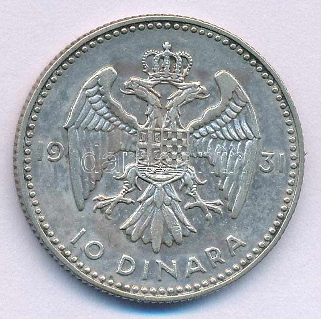 Yugoslavia 1931. ... https://www.darabanth.com/hu/489-Gyorsarveres/489.0/Numizmatika/Kulfoldi-fem-es-ezustpenzek~2000017/Jugoszlavia-1931-10D-Ag-I-Sandor-TVF3Cbr-3E-Yugoslavia-1931-10-Dinara-Ag-Alexander-I-CVF3C~II3288727