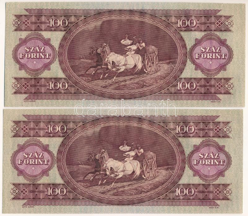 Leírás: 1968. 100Ft (2x) sorszámkövetők "B 001 005723 - B 001 005724" T:AU, hullámos papír