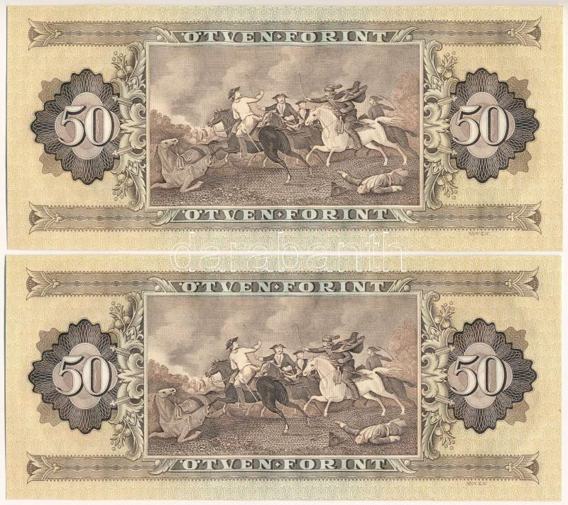 Leírás: 1986. 50Ft (2x) sorszámkövetők "D 762 008208 - D 762 008209" T:AU, hullámos papír