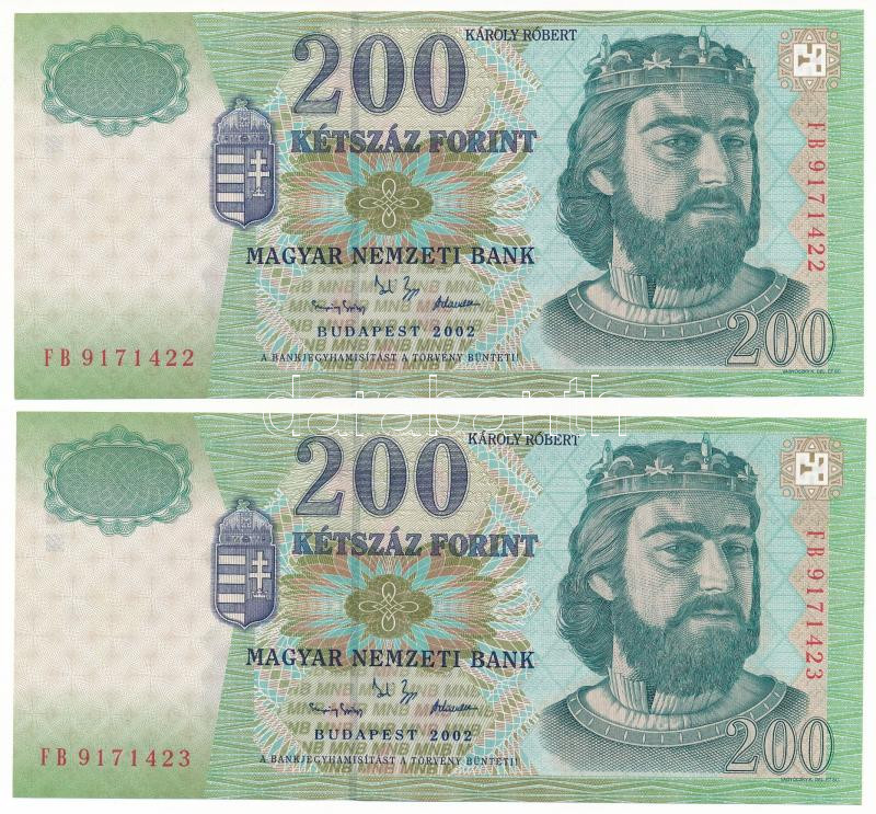 Leírás: 2002. 200Ft (2x) sorszámkövetők "FB 9171422 - FB 9171423" T:UNC
