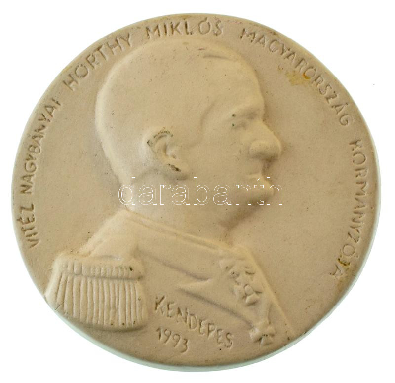 1993. "Vitéz Nagybányai Horthy Miklós Magyarország Kormányzója, K... https://www.darabanth.com/hu/489-Gyorsarveres/489.0/Numizmatika/Magyar-emlekveretek-plakettek~2000010/1993-3Cem3EVitez-Nagybanyai-Horthy-Miklos-Magyarorszag-Kormanyzoja-Kenderes-19933Cem3E-keram~II3321273