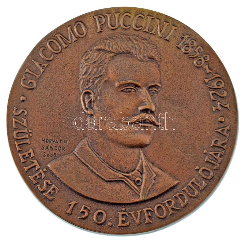 Horváth Sándor (1956-) 2008. "Giacomo Puccini 1858-1924 - születé... https://www.darabanth.com/hu/489-Gyorsarveres/489.0/Numizmatika/Magyar-emlekveretek-plakettek~2000010/Horvath-Sandor-1956-2008-Giacomo-Puccini-1858-1924-szuletese-150-evfordulojara-keto~II3283235