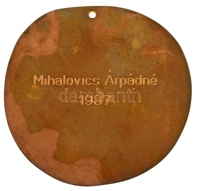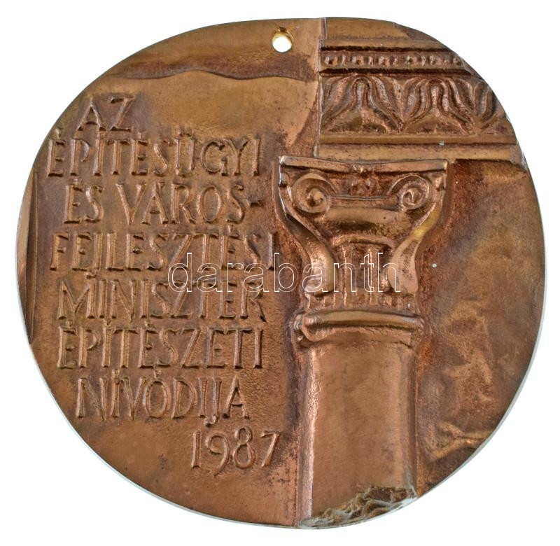 Kiss Nagy András (1930-1997) 1987. "Az Építésügyi és Városfejlesztési Miniszter Építészeti Nívódíja 1987" bronz emlékérem, hátoldala gravírozott, felül lyukasztott (93mm) T:XF