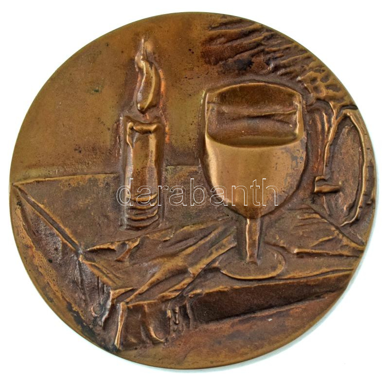 Kiss Sándor (1925-1999) 1977. "Házkörüli Árutermelő Kisgazdaságok Második Badacsonyi Borversenye - Tóthegyen - MCMLXXVII József napján" kétoldalas, öntött bronz plakett (~103-105mm) T:AU
