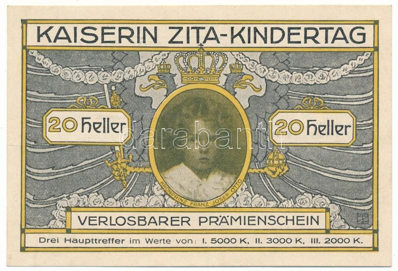 Leírás: Ausztria 1916. "Zita királyné gyermeknap sorsjegy" 20h-ról T:XF