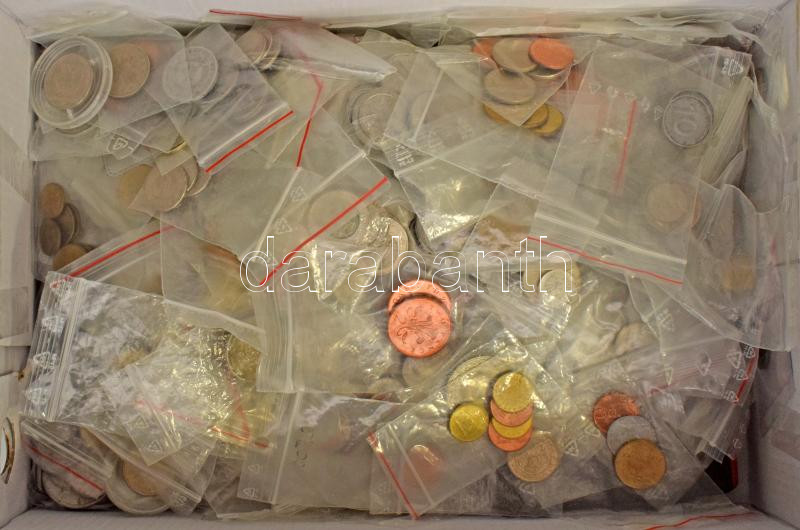 "Grandpa's treasure chest", mixed set of foreign and Hungarian coins (~5kg gross), within Hungary 1892KB 10 Fillér Ni (rarer year), United Kingdom 1968-1971. 1/2 Penny - 10 Pence (5xdiff) circulation set on cardboard, in original "Britain's first decimal coins" leatherette case (2pcs), and coins in 4 small holders. Many coins in separate zip-lock bags. C:mixed