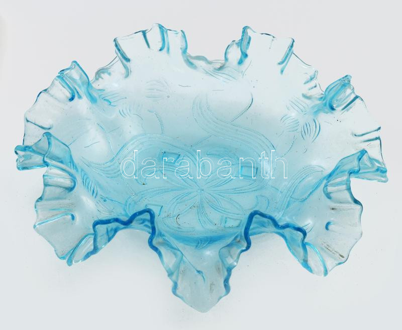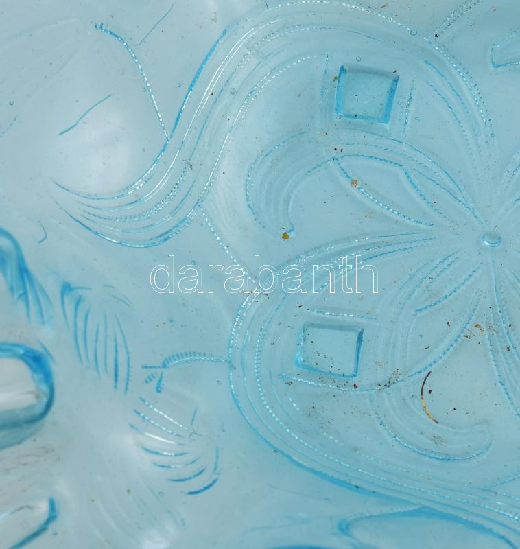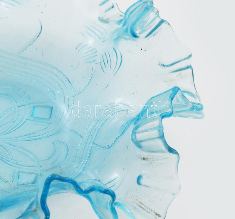 cca 1900-1930, Kék uránüveg kínáló. Jelzés nélkül, kis kopással, d: 22,5 cm /// Circa 1900-1930, blue uranium glass serving dish. Unmarked, with minor wear, diameter: 22.5 cm.
