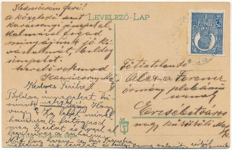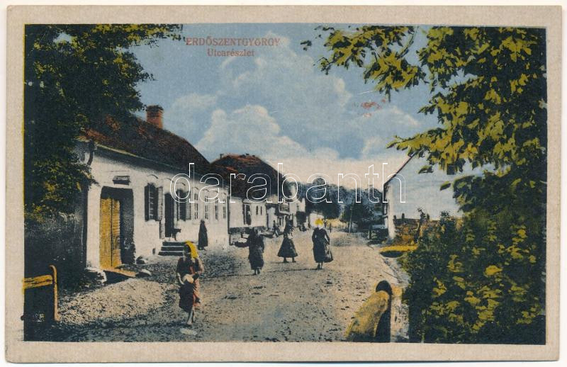 Erdőszentgyörgy, Sangeorgiu de Padure; utca részlet. Fogyasztási szövetkezet kiadása. Hátoldalon Aleta Ferenc örmény plébánosnak címzett levél / street view (EK)