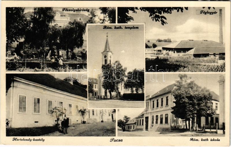 1936 Pacsa, Főszolgabíróság, Római katolikus templom és iskola, Téglag... https://www.darabanth.com/hu/490-Gyorsarveres/490.0/Kepeslapok/Magyarorszag~2000005/1936-Pacsa-Foszolgabirosag-Romai-katolikus-templom-es-iskola-Teglagyar-Hertelendy-kaste~II2649395