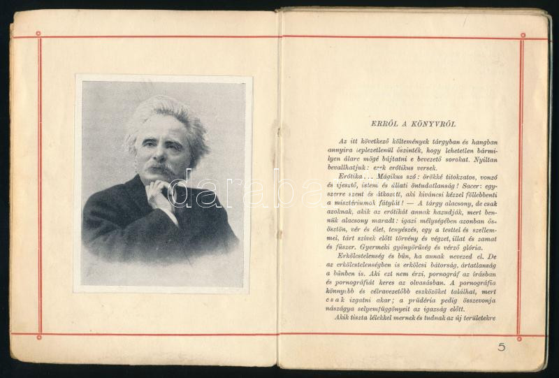 h. n., é. n., k. n. 91 l. Ford.: Szabó Lőrinc. Ebből a könyvből ? kézirat gyanánt ? 300 számozott példány készült. Könyvkereskedői forgalomba nem került. Ez a példány a 7. számú Sérült kiadói papírkötésben