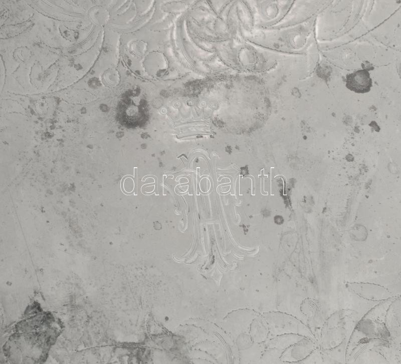Leírás: Nemesi címeres alpakka tálca, patinás, 23x28 cm