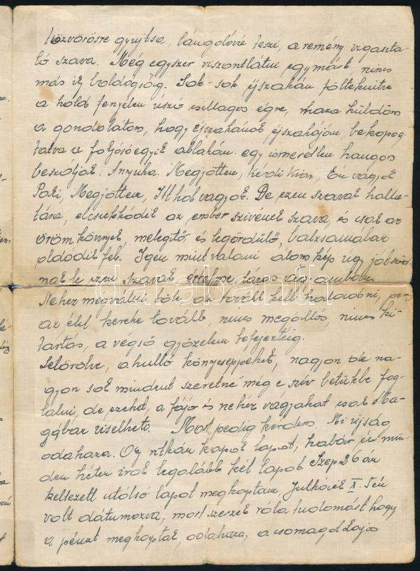 Leírás: 1942 Magyar katona levele a keleti frontról, Oroszországból szüleinek hazaküldve, 6 beírt oldal, kissé sérült, foltos