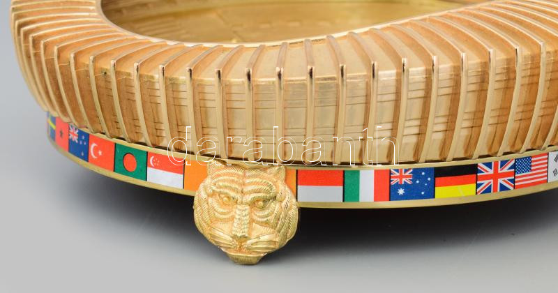 Leírás: 1988-as Szöuli olimpia szuvenírtárgya: az olimpiai stadion bronz makettje, bársonybevonatú díszdobozban, 20x19 cm, jó állapotban.