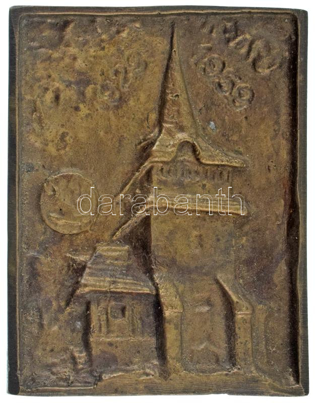 Leírás: 1959. Avasi templomot ábrázoló egyoldalas öntött bronz plakett (~72x93,5mm)