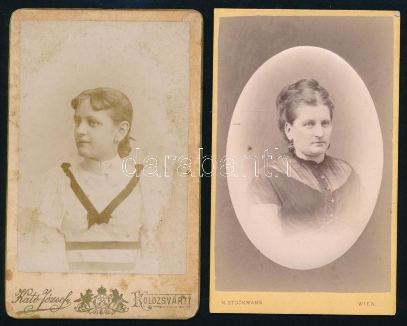 cca 1880 Női portrék, 2 db, az egyik porcelánkép utánzatú keményhátú f... https://www.darabanth.com/hu/491-Gyorsarveres/491.0/Fotomuveszet/Foto~2000025/cca-1880-Noi-portrek-2-db-az-egyik-porcelankep-utanzatu-kemenyhatu-foto-masik-foltos-~II3372371