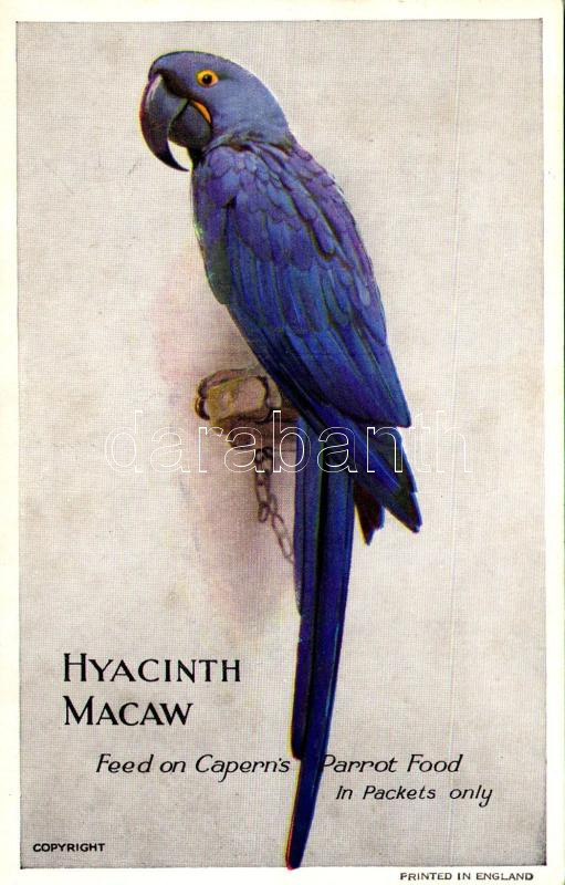 Hyacinth Macaw. Feed on Capern's Parrot Food advertisement (non P... https://www.darabanth.com/hu/491-Gyorsarveres/491.0/Kepeslapok/Allat~1500017/Hyacinth-Macaw-Feed-on-Caperns-Parrot-Food-advertisement-non-PC~II3185914