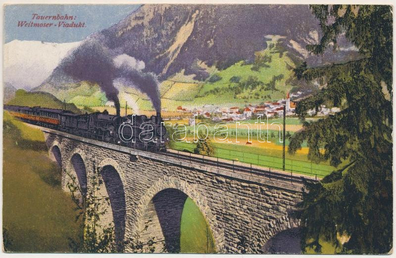 1924 Tauernbahn, Weitmoser Viadukt / railway bridge, locomotive, train https://www.darabanth.com/hu/491-Gyorsarveres/491.0/Kepeslapok/Ausztria~1500018/1924-Tauernbahn-Weitmoser-Viadukt-railway-bridge-locomotive-train~II3186050