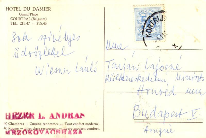 Kortrijk, Courtrai; Hotel du Damier, Restaurant, Grand Place (fa) https://www.darabanth.com/hu/491-Gyorsarveres/491.0/Kepeslapok/Belgium~1500022/Kortrijk-Courtrai-Hotel-du-Damier-Restaurant-Grand-Place-fa~II3185261