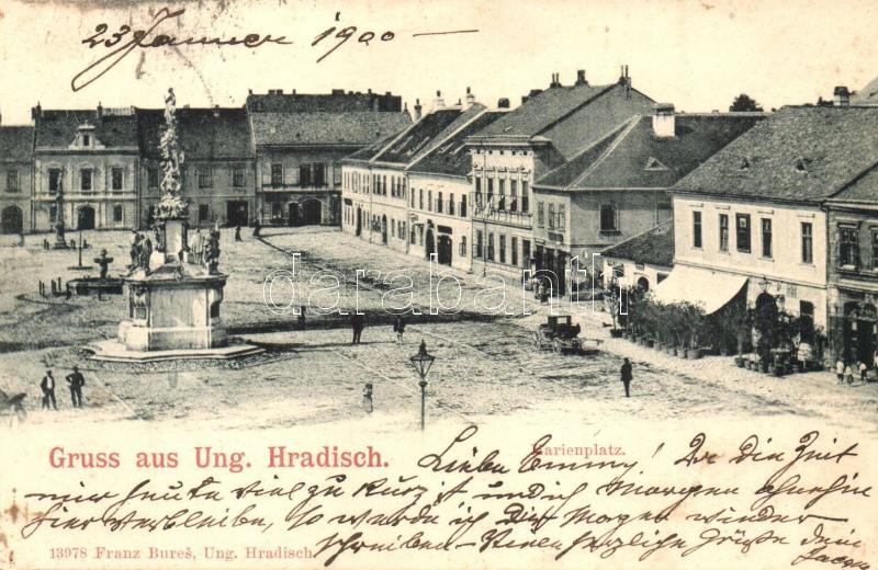 Leírás: 1900 Uherské Hradiste, Ungarisch Hradisch, Magyarhradis; Marienplatz / square with monument. Franz Bures
