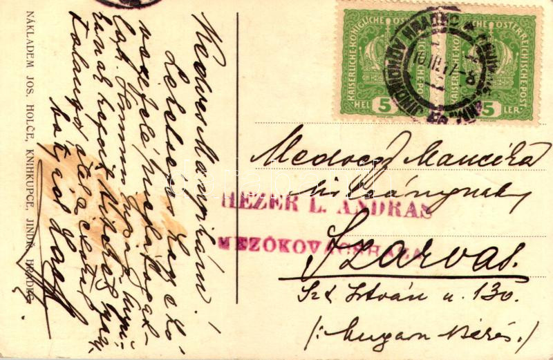 Leírás: 1917 Jindrichuv Hradec, Neuhaus i. Böhmen; Nezárecká bráma / city gate. Art Nouveau s: Jano Sramek (fl)