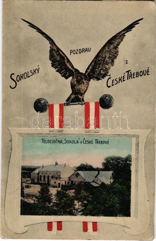 Leírás: Ceská Trebová, Böhmisch Trübau; Telocvicna "Sokola" / "Sokol" sports movement gym, falcon