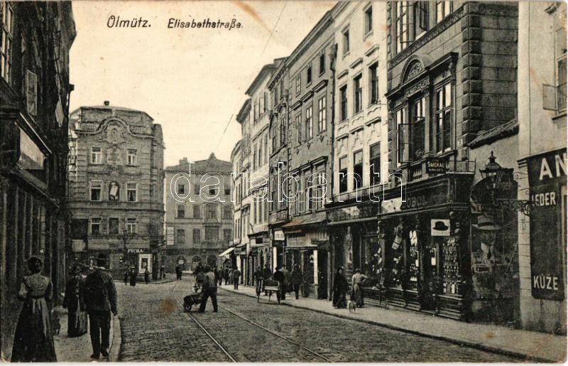 Olomouc, Olmütz; Elisabethstraße / street viewl, shops + K.u.K. Garnis... https://www.darabanth.com/hu/491-Gyorsarveres/491.0/Kepeslapok/Cseh-Koztarsasag~1500029/Olomouc-Olmutz-ElisabethstraC39Fe-street-viewl-shops-plus-KuK-Garnisonsspital-in-Olmutz-EK~II1944570