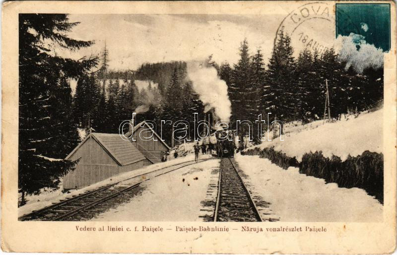 Leírás: 1932 Komandó, Kommandó, Comando, Comandau; Vedere al liniei c.f. Paisele / Paisele Bahnlinie / Naruja vonalrészlet Paisele télen, iparvasút, gőzmozdony, vonat. Foto Adler Oscar / industrial railway, locomotive, train in winter (EK)
