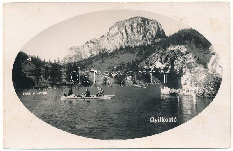 1941 Gyilkostó, Ghilcos, Lacul Rosu; csónakázók. Fotó Ambrus / boat in... https://www.darabanth.com/hu/491-Gyorsarveres/491.0/Kepeslapok/Erdely~1500006/1941-Gyilkosto-Ghilcos-Lacul-Rosu-csonakazok-Foto-Ambrus-boat-in-the-lake-photo~II3254321