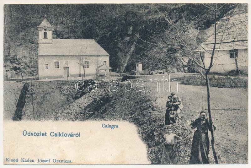 Leírás: Csiklovabánya, Csiklova, Csiklóbánya, Németcsiklova, Ciclova Montana (Oravicabánya, Oravita); Calugra / Manastirea Calugarul / Kalugra ortodox kolostor. Kaden József kiadása / Orthodox monastery (r)
