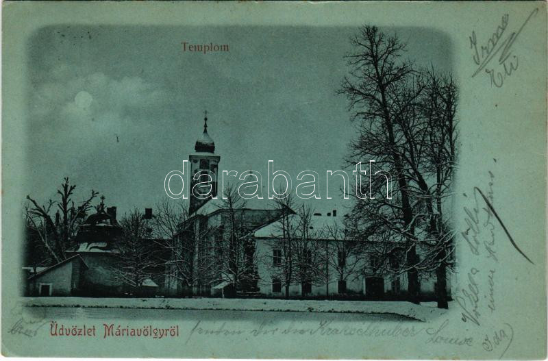Leírás: 1900 Máriavölgy, Mariental, Mariathal, Marianka (Pozsony, Pressburg, Bratislava); Templom este / Kirche / church at night
