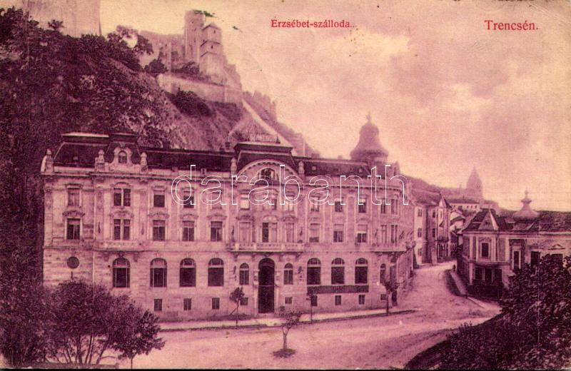 1908 Trencsén, Trencín; Erzsébet szálloda, vár / Trenciansky hrad / ho... https://www.darabanth.com/hu/491-Gyorsarveres/491.0/Kepeslapok/Felvidek~1500007/1908-Trencsen-Trencin-Erzsebet-szalloda-var-Trenciansky-hrad-hotel-castle-plus-POZSONY-~II3186461