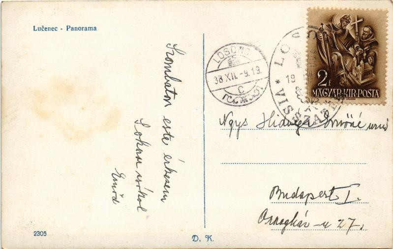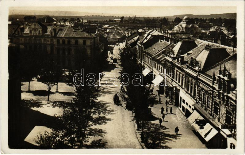 Leírás: 1938 Losonc, Lucenec; látkép, üzletek, zsinagóga / general view, shops, synagogue + "1938 Losonc visszatért" So. Stpl. (fl)