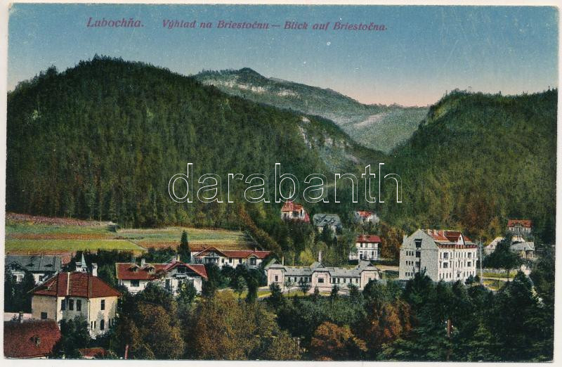 Leírás: Fenyőháza, Lubochna; Vyhlad na Briestocnu / látkép. Kiadja Izidor Holzmann / general view
