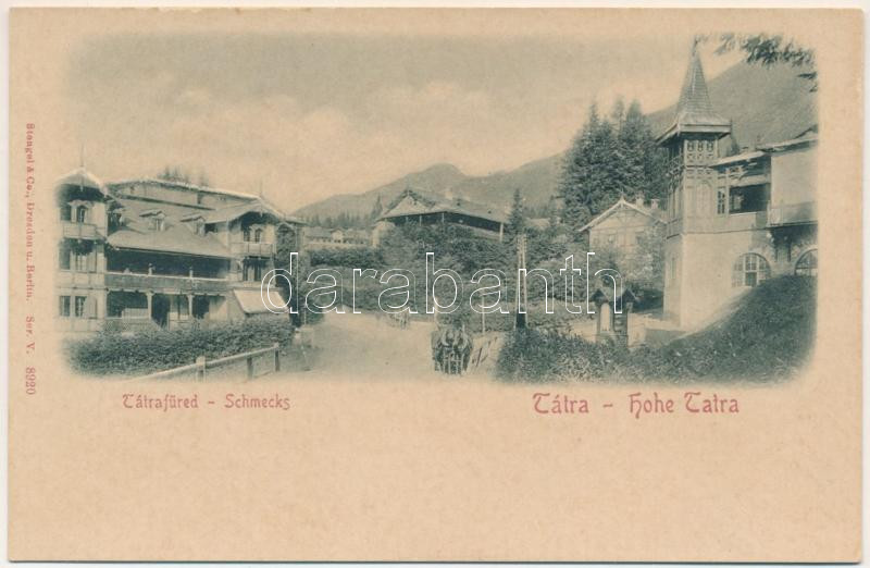 Leírás: Ótátrafüred, Tátrafüred, Altschmecks, Stary Smokovec (Magas-Tátra, Vysoké Tatry); Maurer Adolf üzlete / shop. Emb. Stengel Reliefkarte (fl)