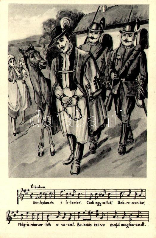 Leírás: Nem loptam én életembe, csak egy csikót Debrecenbe... magyar folklór művészlap, csendőrök / Hungarian folklore art postcard, gendarmes