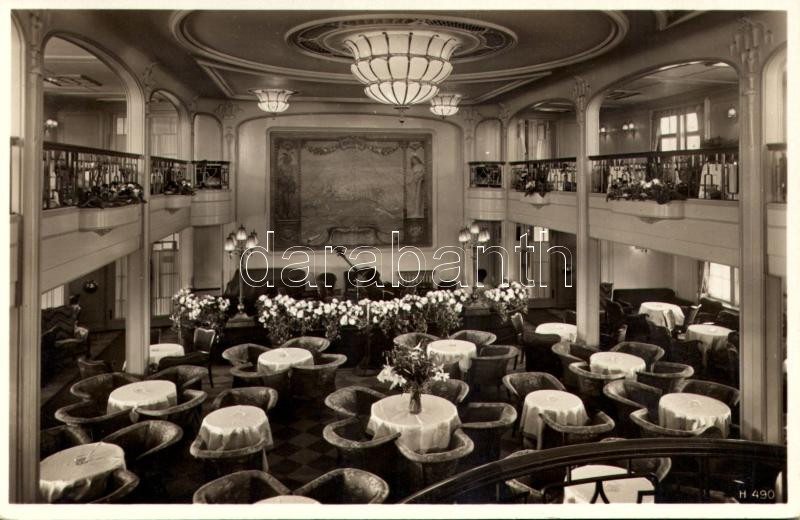 Hapag-Motorschiff 'Milwaukee' Halle / MS Milwaukee was a German diesel-powered, passenger ship, music hall, interior. Hamburg-America Line. Originalphoto: Hans Hartz