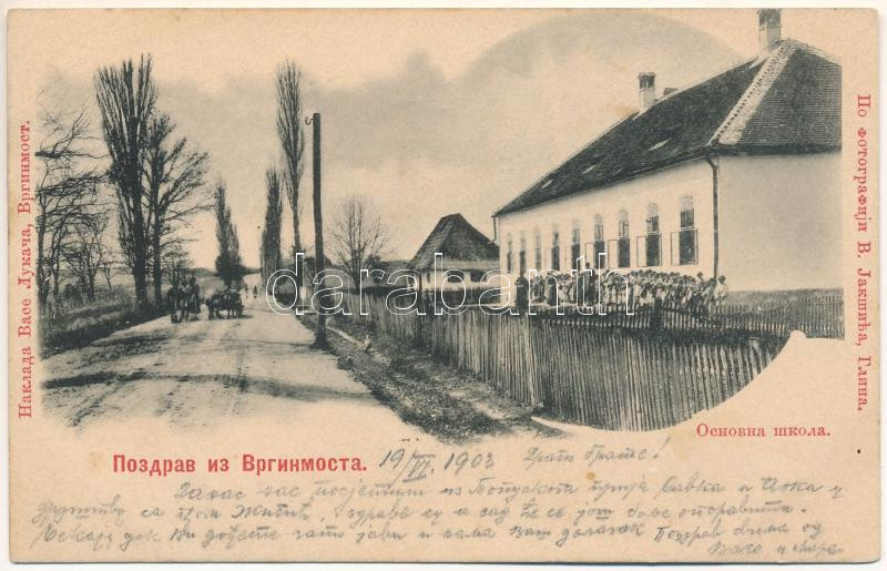 Leírás: 1903 Vrginmost, Gvozd; iskola / school + "K.u.k. Milit. Post Mostar" (EK)