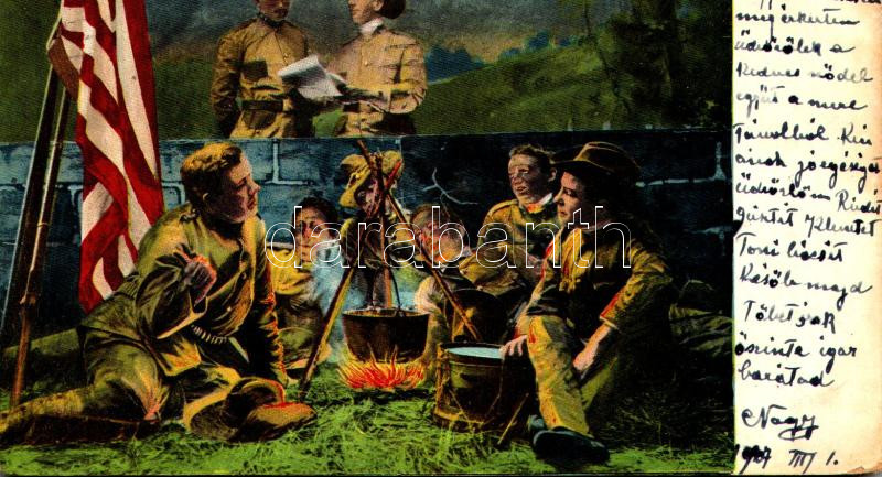 1907 Amerikai katonák zászlóval / American military, soldiers with fla... https://www.darabanth.com/hu/491-Gyorsarveres/491.0/Kepeslapok/Katonai~1500065/1907-Amerikai-katonak-zaszloval-American-military-soldiers-with-flag-EK~II3191347