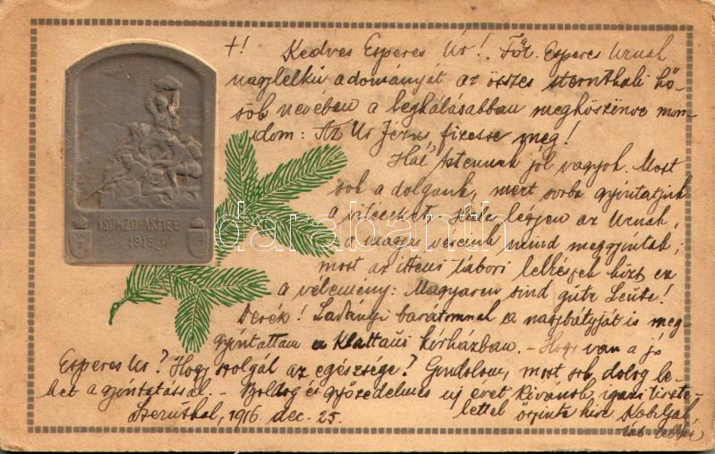 1916 Isonzo-Armee 1915 feliratú jelvény képe tábori postai levelezőlapon / WWI Austro-Hungarian K.u.K. badge on a military field post, floral, Emb. + "Militärselsorge des k.u.k. Reservespital Nr. 7. Wrschowitz-Nusle" "Zensuriert Spitälerkommando Sternthal" (EB)